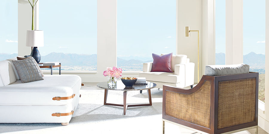 The floor to ceiling windows in this space are absolutely stunning. They make for the most gorgeous artwork. For large windows like this there are many options that can help to insulate without blocking your view. Some of our favorites for this are: