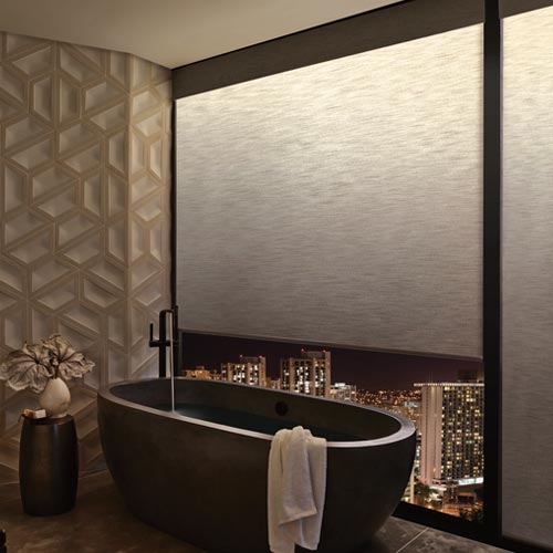 Enjoy the ideal lighting while you have complete control over privacy with Aura Illuminated Shades. This new feature integrates LED lighting into the headrail of your roller shades. Whether you need to close your shades due to harsh or inadequate lighting, or if you need control of privacy, you can still enjoy the perfect interior lighting. Illuminated shades will light up your interiors, capable of dimming or adjustments of lighting “temperature,” on a range from cool and bright, to cozy and warm.