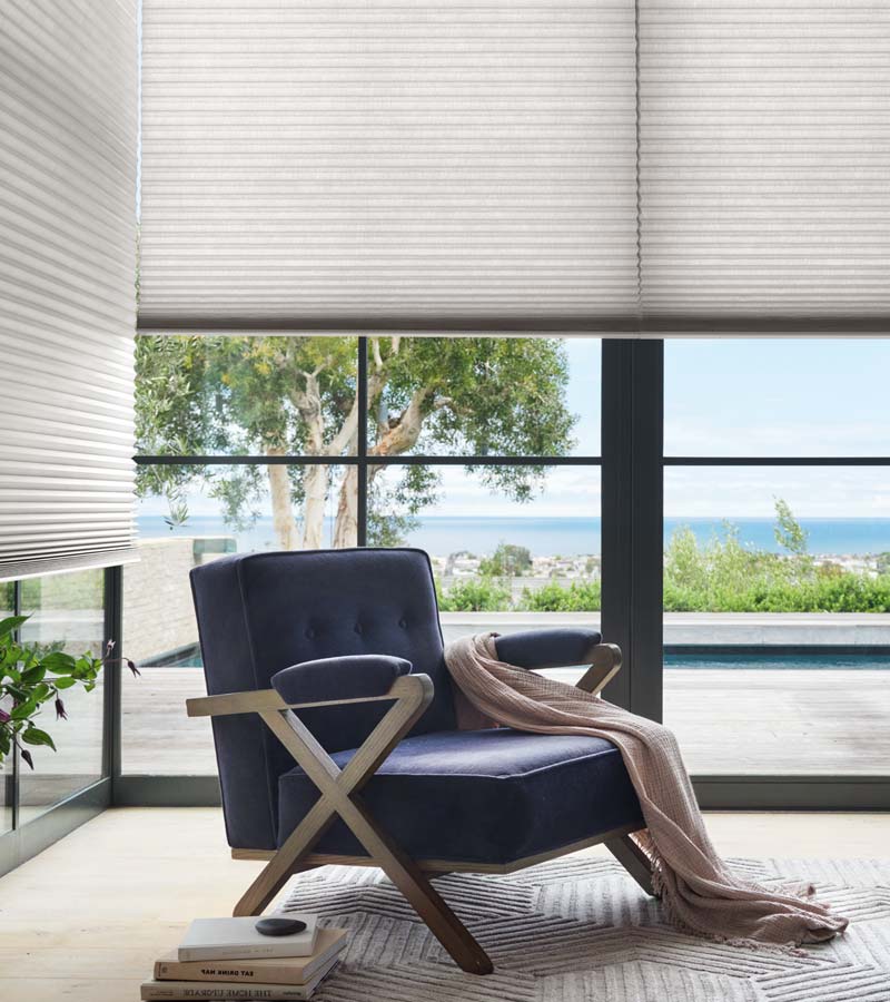 Yes, we have specific collections that block direct sunlight to reduce heat gain, as well as insulate the windows to regulate the interior temperature. Our energy efficient Duette® Honeycomb shades can do both–insulate and block light. Some of our other energy efficient window coverings include thermal drapery, custom shutters, cellular shades and roman shades.